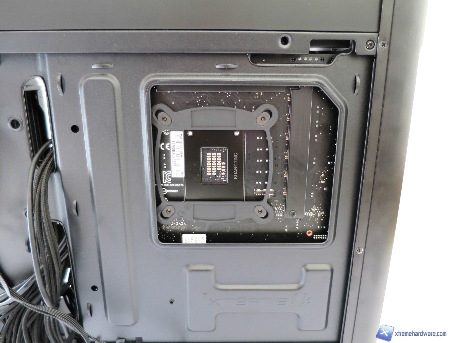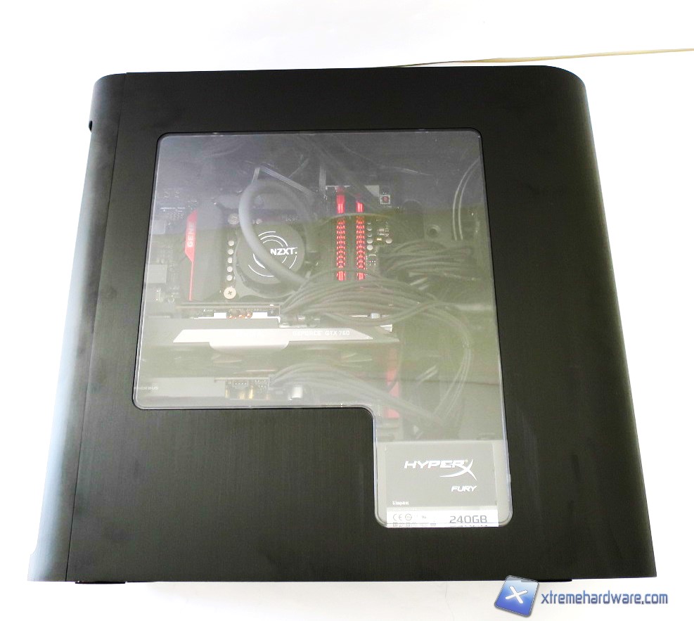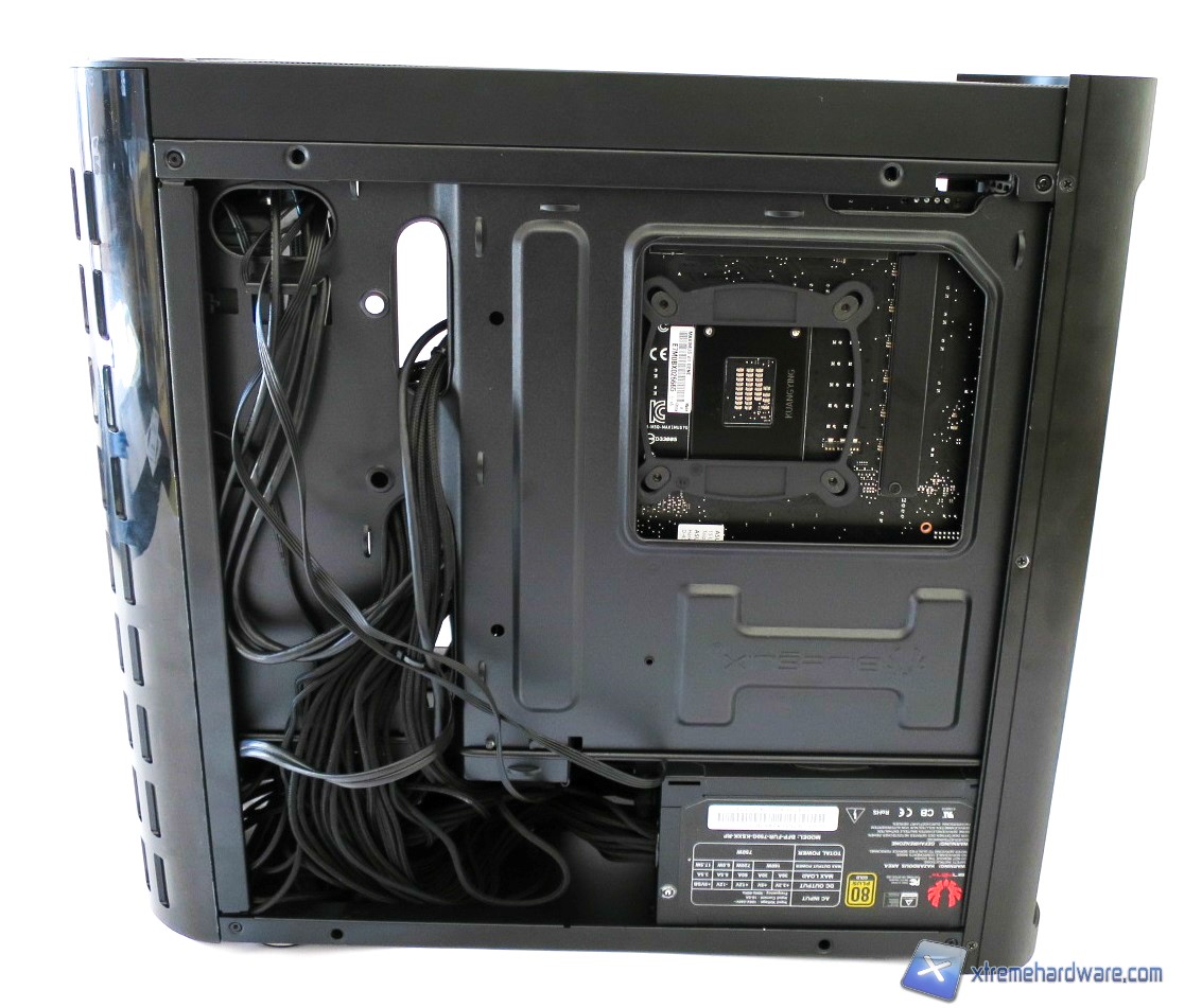 Lo spazio complessivo del BitFenix Pandora permette comunque un adeguato cable management (varia da configurazione a configurazione) anche se non possiamo sfruttare il foro per far passare correttamente il singolo cavo 8pin EPS.