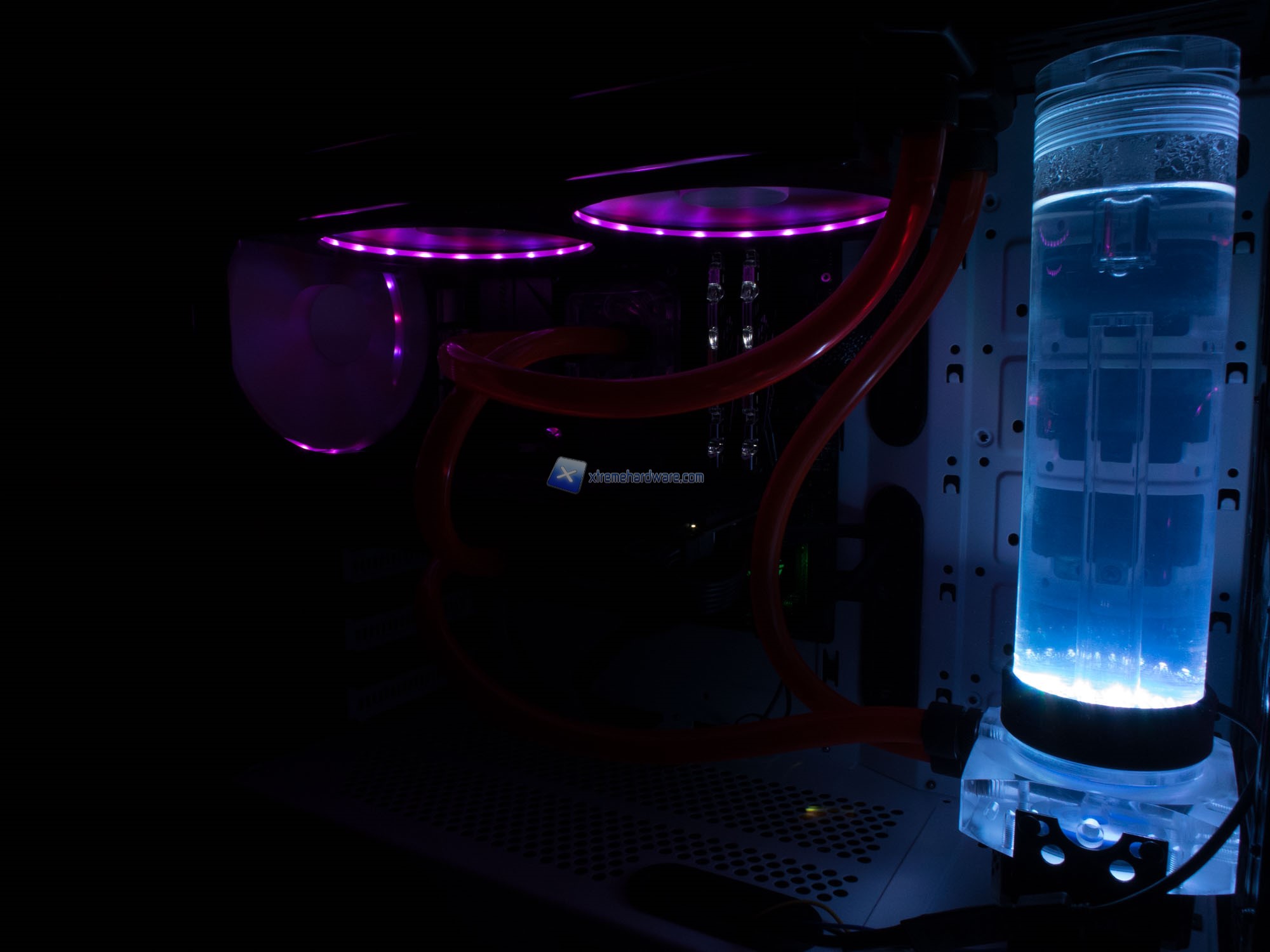 L’installazione nel Phanteks Enthoo Pro M Special Edition ha richiesto davvero poco tempo giusto il tempo di installare tutti i componenti, prendere le misure esatte dei tubi (vista la configurazione a liquido integrata) e aggiungere le ventole aggiuntive con relativi frame Phanteks Halos. I nostri componenti come sempre sono stati perfettamente collocati e senza alcun tipo di problematica durante il montaggio. Lo spazio è adeguato e i fori per dove far passare tutti i cavi sono ottimizzati bene per creare una configurazione quanto più pulita e ordinata. Nulla da dire al collaudato Enthoo Pro M.