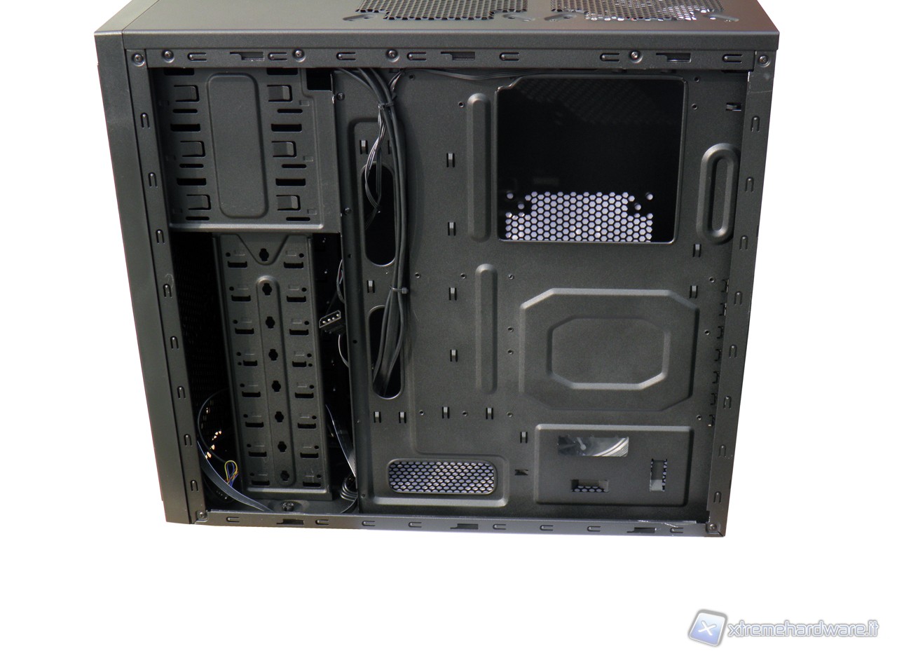 L'interno, abbastanza ampio per le dimensioni del case, vede come già detto l'installazione dell'alimentatore nella parte inferiore, accorgimento sempre più diffuso tra i produttori di cabinet negli ultimi tempi.