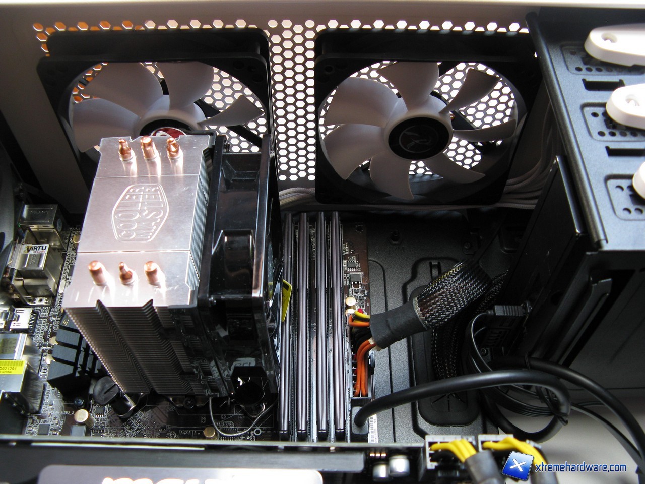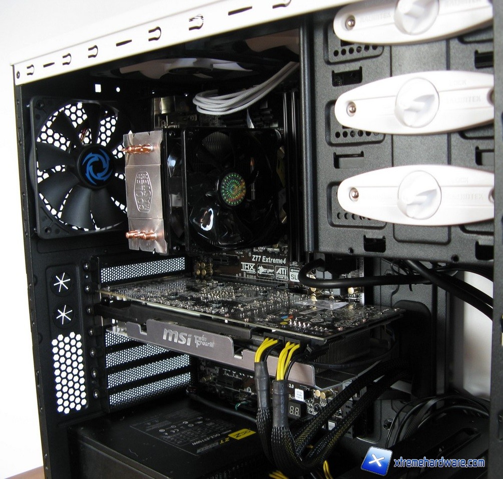 In primo luogo evidenziamo il poco spazio a disposizione delle ventole sul top, è consigliabile pertanto installarle prima di inserire la scheda madre ed il dissipatore della cpu; lo spazio è appena superiore ai 25mm dunque le ventole entrano davvero per qualche millimetro.