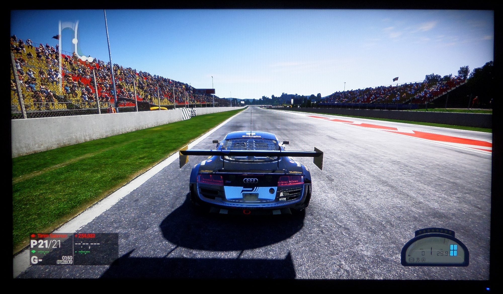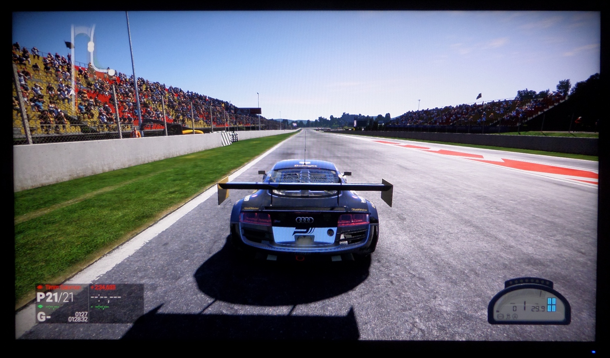 Analizzando il comportamento del Samsung con i videogames, l’impressione è quella di avere a che fare con un prodotto dalla buona reattività. I tre valori dell’overdrive settabili manifestano un comportamento diverso e quello centrale, come detto nel capitolo precedente, è quello che meglio bilancia l’effetto scia senza sfociare nel reverse ghost. La tecnologia AMD FreeSync aiuta a ridurre il tempo di lag e i fenomeni definiti stuttering e tearing, ma nel PC deve esserci una GPU Radeon compatibile. Le tre immagini qui di seguito riportate permettono un confronto tra la riproduzione con le impostazioni indicate.
