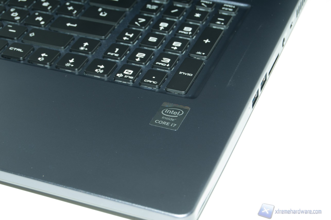 Notiamo inoltre che il touchpad, dotato di pieno supporto alle gesture per windows 8.1, è leggermente incavato nello chassis ed è arricchito da un bordino antipolvere color alluminio.