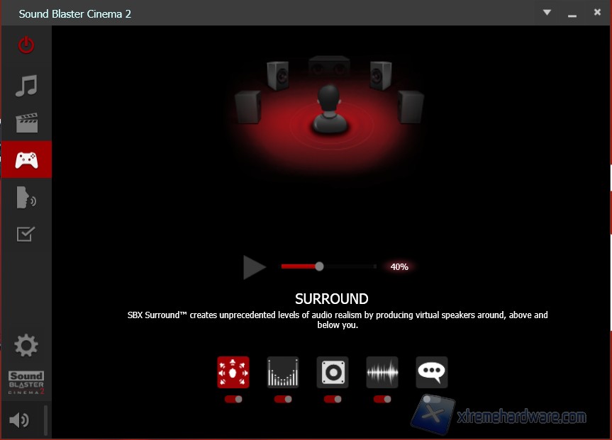 All'interno del sistema troveremo installato un pannello di gestione della Creative attraverso il quale è possibile settare la nostra scheda in base all'utilizzo del computer per poter godere appieno dell'esperienza che stiamo vivendo.