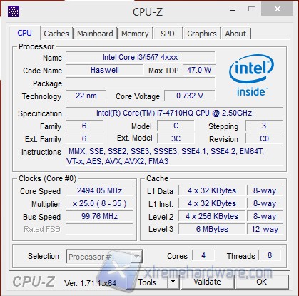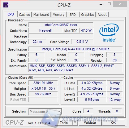 Il processore è un Intel i7-4710HQ quadcore operante alla frequenza di 2.5GHz (3.4GHz in Turbo core) appartenente alla famiglia "Haswell".