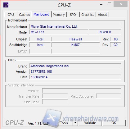 La mainboard, modello MS-1773 è prodotta ovviamente da MSI ed è animata da un chipset Intel HM87, affiancata da 16GB di RAM (2x8GB) DDR3 operante alla frequenza di 1600MHz.