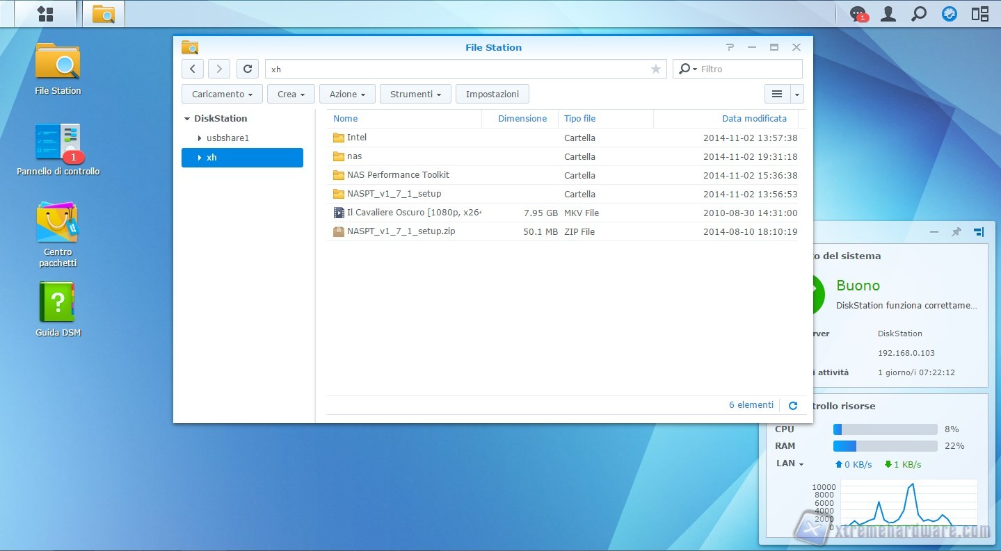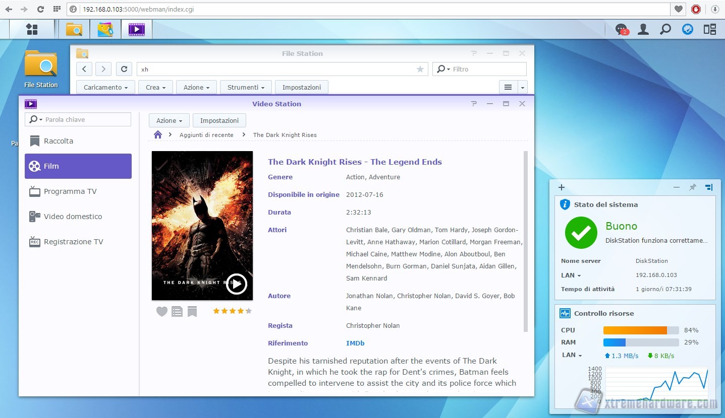 Anche attraverso il Video Station riusciamo a guardare un film in FullHD .mkv senza rallentamenti, ma notiamo che la CPU viene usata per quasi il 90%, valore massimo registrato.
