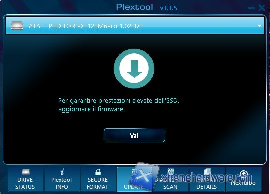 La tab successiva ci permetterà di aggiornare il Firmware dell’SSD nel momento in cui ne sarà disponibile uno per il nostro drive.