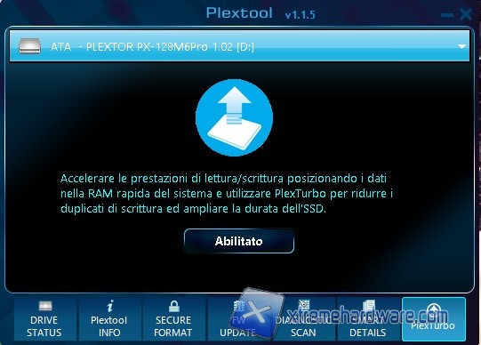 Passiamo ora ad analizzare un attimo questo software/utility interamente sviluppato da Plextor, un po’ come Samsung Macigian per gli SSD Samsung, per monitorare e gestire completamente gli SSD di Plextor. Prima di analizzare il software ricordiamo che PlexTurbo o meglio la tecnologia PlexTurbo è data per definizione come: ‘’ L'ultima soluzione di caching SSD RAM di Plextor con tre funzioni: aumento delle prestazione, perdita di corrente sicura e meccanismo di estensione della durata.’’