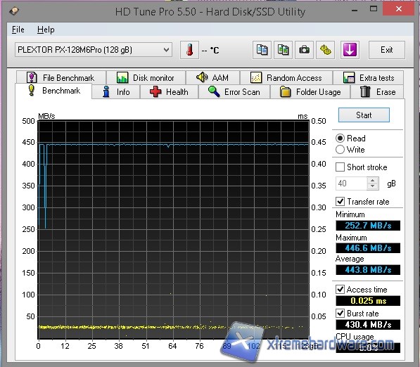 HD Tune è un'utility per Hard disks e SSDs con molte funzioni, può essere utilizzato per misurare in modo accurato le performance del drive, per trovare errori, per controllare lo stato vitale del drive, per cancellare dati in modo sicuro e molto altro ancora. La versione da noi utilizzata è l'ultima disponibile al momento e si tratta della 5.50. Il programma è disponibile in due versioni, una freeware (HD Tune) e una a pagamento (HD Tune PRO), nel nostro caso è stato necessario utilizzare la versione PRO in quanto è l'unica a misurare le prestazioni del drive in scrittura.