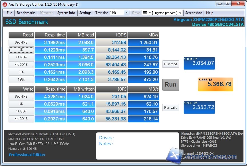 Questo nuovo bench introdotto nella nostra suite di test, chiamato Anvil's Storage Utilities, è pensato appositamente per gli SSD ed è in grado di testare i drive sotto ogni aspetto. Con lo stesso Benchmark abbiamo provveduto ad effettuare i test occupando lo spazio del drive lasciando un 10% libero per confrontare le prestazioni a Disco Vuoto e Disco pieno.