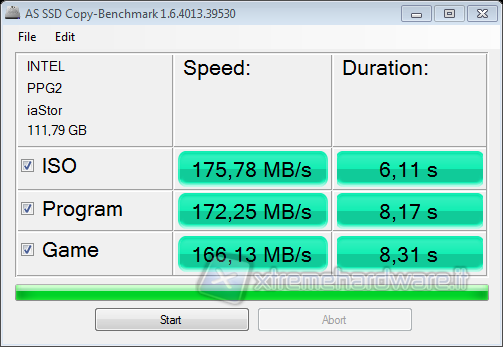 Il test ”copy” di AS SSD Benchmark ci consente di capire le performance del nostro disco nel caso in cui volessimo copiare dei dati compressi tra una partizione e l’altra; in questo caso dobbiamo far notare un netto calo prestazionale rispetto a quanto dichiarato dalla casa produttrice.